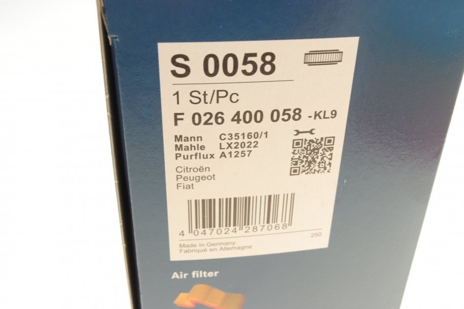 Аналоги "F 026 400 058 BOSCH":