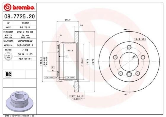 - BREMBO 08.7725.20 подходит к маркам/моделям авто: