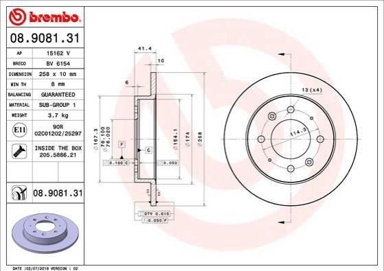 - BREMBO 08.9081.31 подходит к маркам/моделям авто: