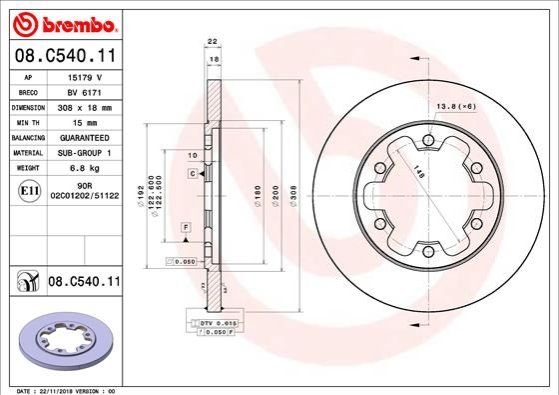 - BREMBO 08.C540.11 подходит к маркам/моделям авто: