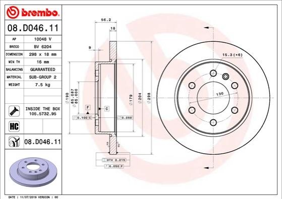 - BREMBO 08.D046.11 подходит к маркам/моделям авто: