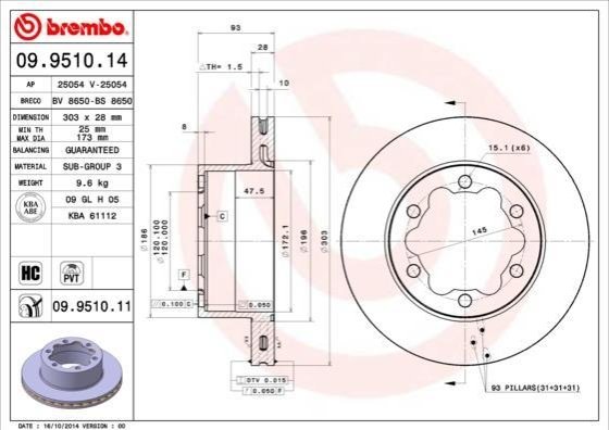 - BREMBO 09.9510.14 подходит к маркам/моделям авто:
