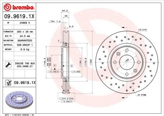 - BREMBO 09.9619.1X подходит к маркам/моделям авто: