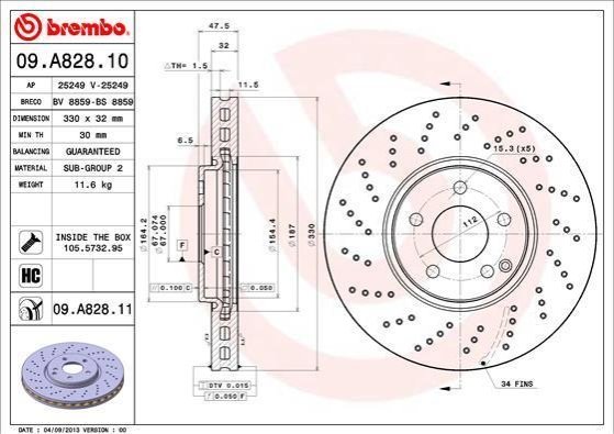 - BREMBO 09.A828.11 подходит к маркам/моделям авто: