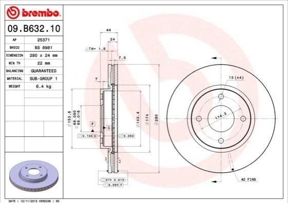 - BREMBO 09.B632.10 подходит к маркам/моделям авто: