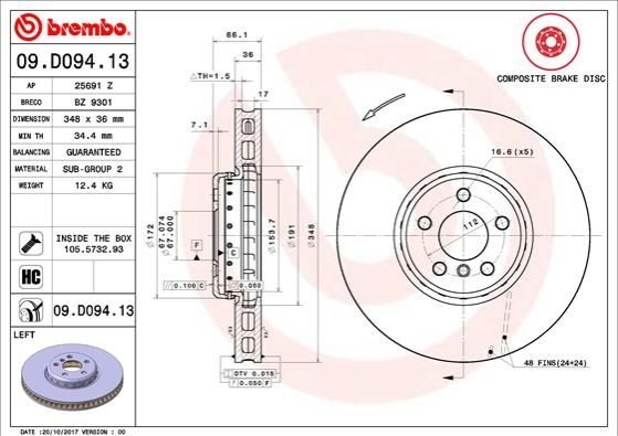 - BREMBO 09.D094.13 подходит к маркам/моделям авто:
