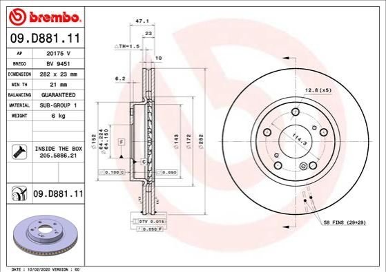 Тормозной диск BREMBO 09.D881.11