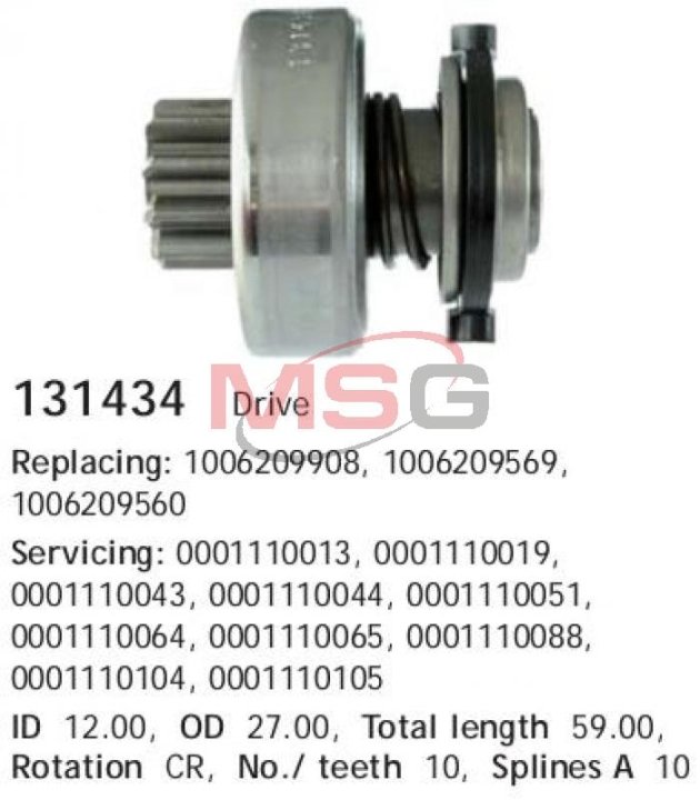 Бендикс стартера CARGO 131434
