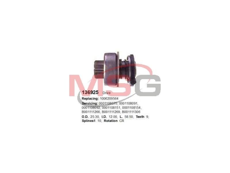 Бендикс стартера CARGO 136925