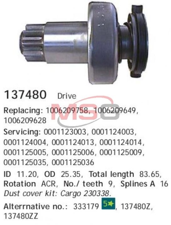 Бендикс стартера CARGO 137480