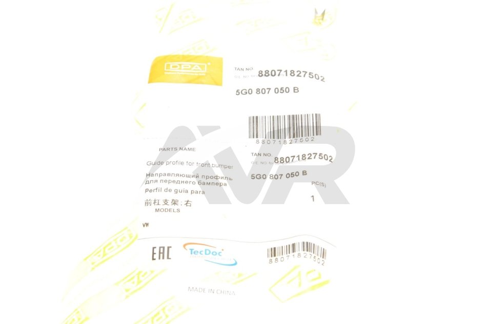 Направляющая переднего бампера правая VW Golf (17-20) DPA 88071827502