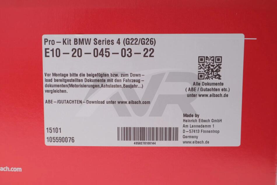 Комплект пружин (Pro-Kit) BMW 3 (G20/G80/G28) 19-/4 (G22/G82) 21- (B57) (4 шт.) EIBACH E10-20-045-03-22