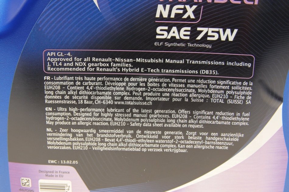 Масло трансмиссионное Tranself NFX 75W (5 Liter) ELF 223530