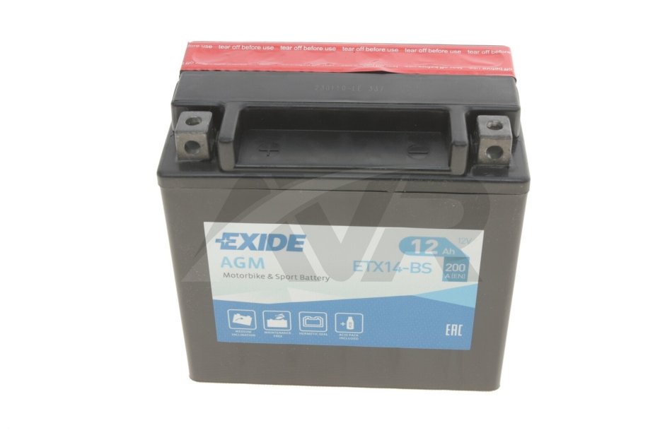 Аккумуляторная батарея AGM 12В 12Аг 200А(EN) L+ EXIDE ETX14-BS