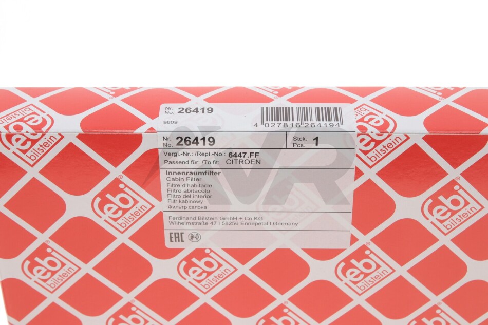 Змінний фільтруючий елемент повітряного фільтра салону FEBI BILSTEIN 26419