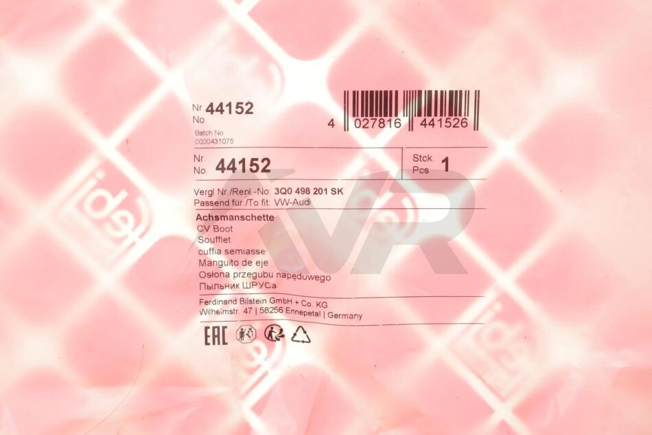 - FEBI BILSTEIN 44152 подходит к маркам/моделям авто: