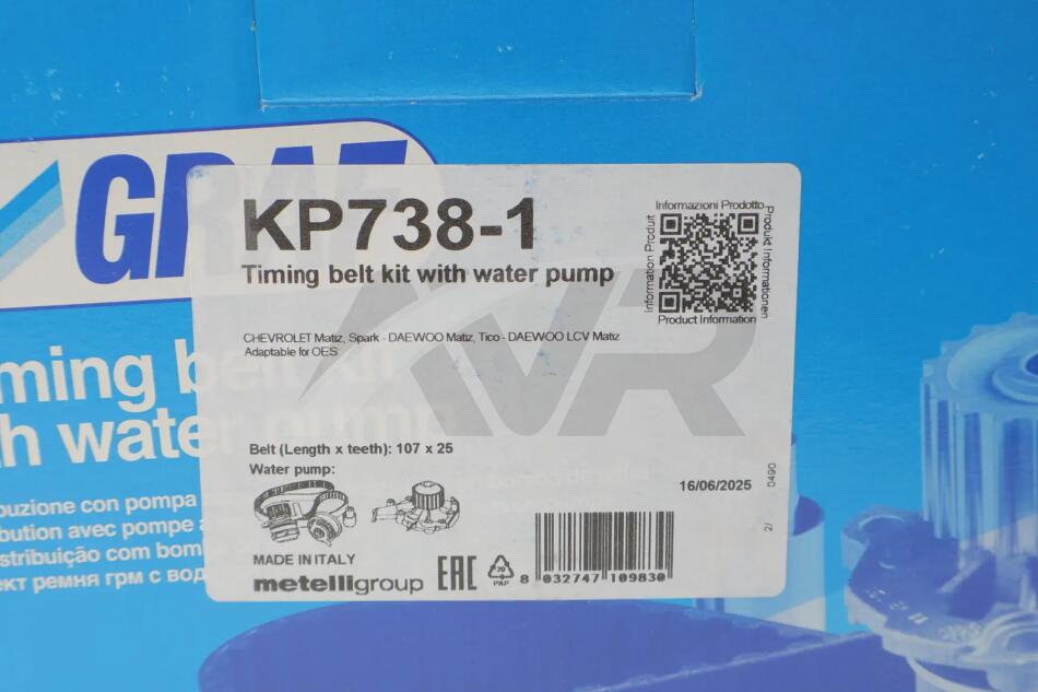 Комплект ГРМ + помпа Daewoo Matiz 0.8/Chevrolet Aveo 1.2 00-06 (25x107z) (PA738) GRAF KP738-1