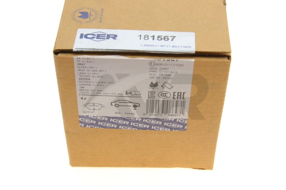 Комплект тормозных колодок (дисковых) ICER 181567