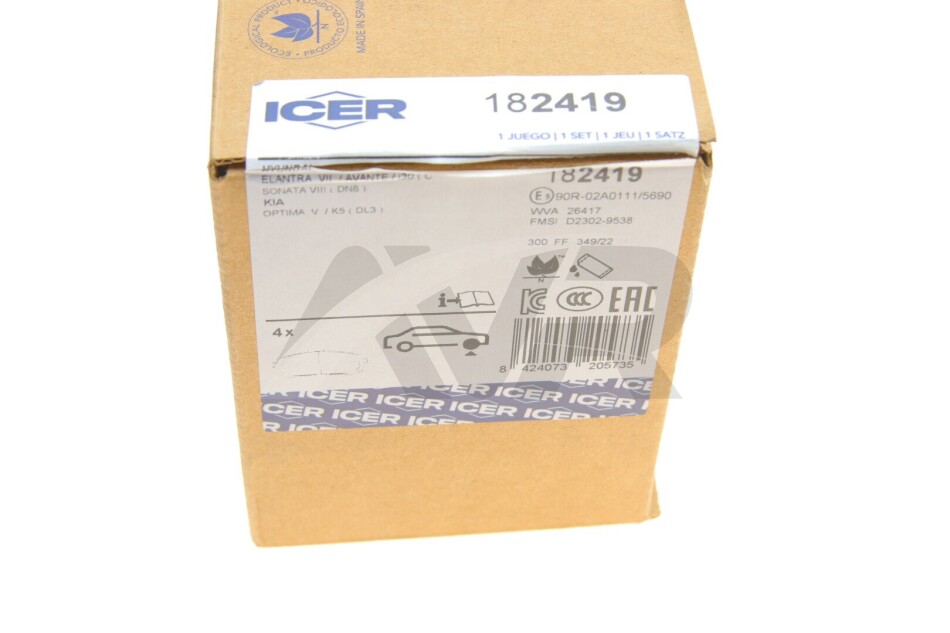 Комплект гальмівних колодок (дискових) ICER 182419