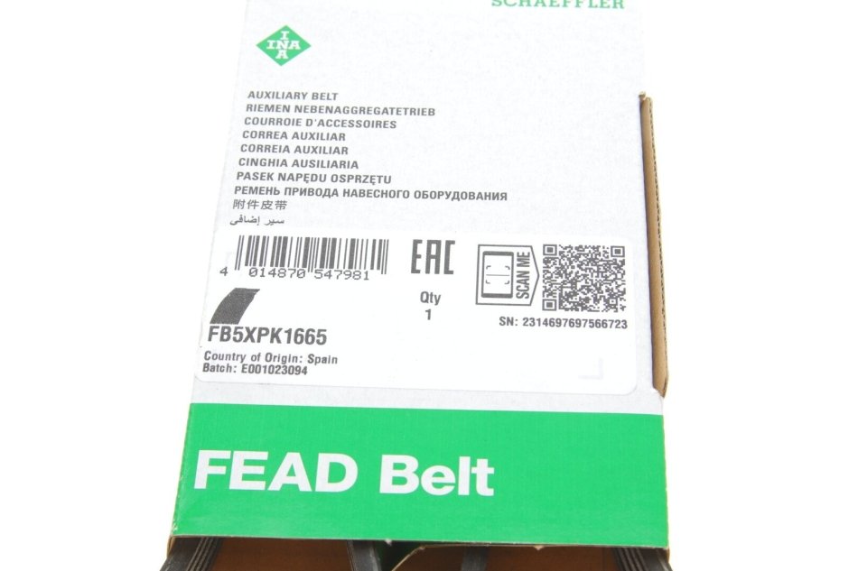 Ремень генератора поликлиновый INA FB 5XPK1665