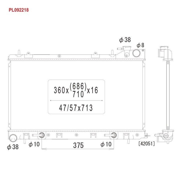 Размеры радиатора: 360 X 686 X 16