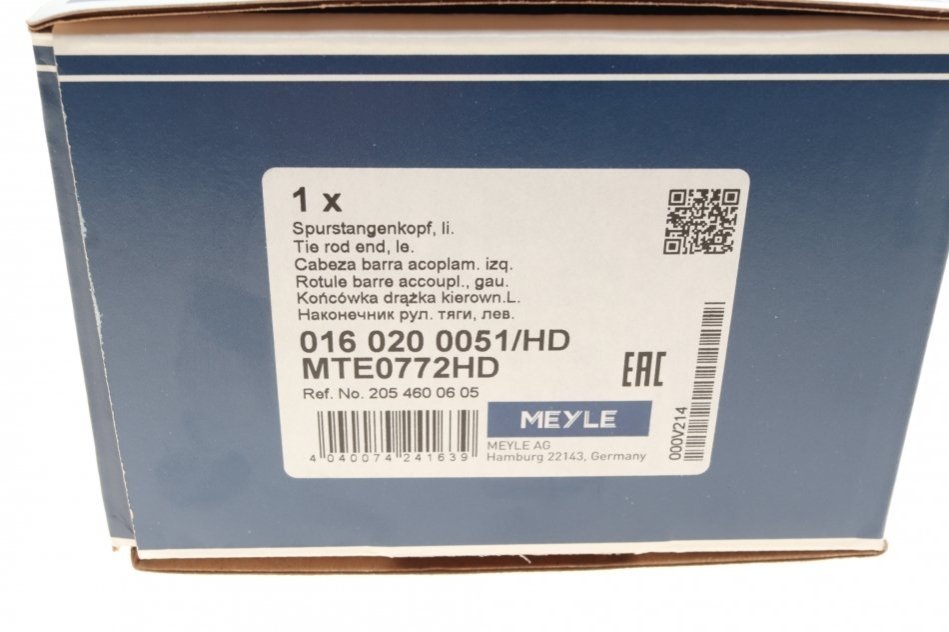 Наконечник рулевой тяги MEYLE 016 020 0051/HD