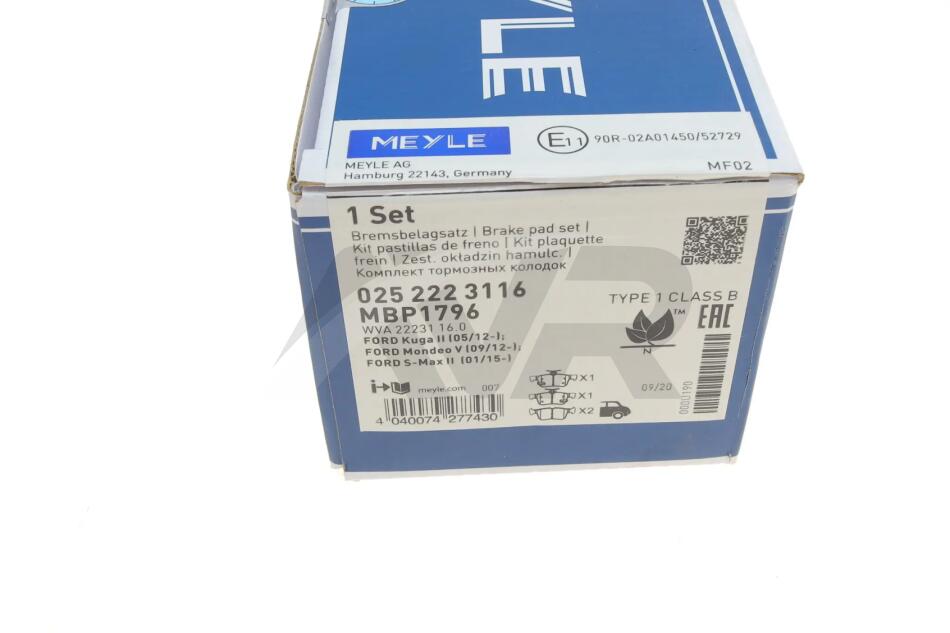 Комплект тормозных колодок MEYLE 025 222 3116