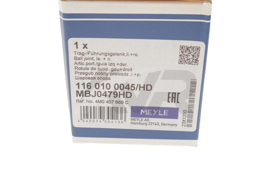 Шаровая опора, передняя ось MEYLE 1160100045HD