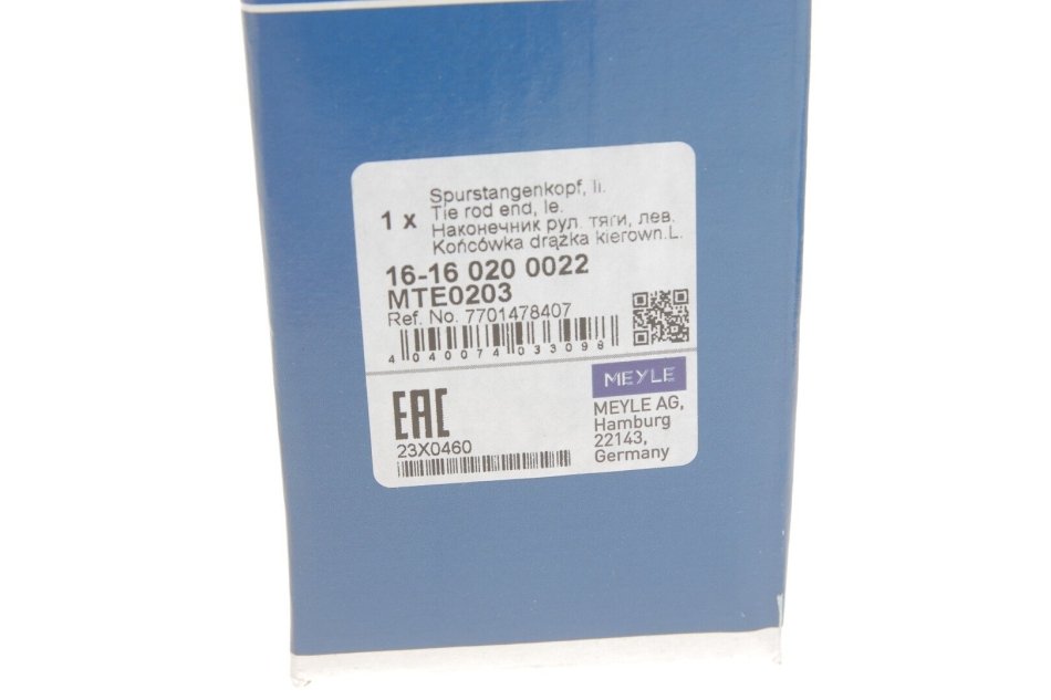 Наконечник рулевой тяги MEYLE 16-16 020 0022
