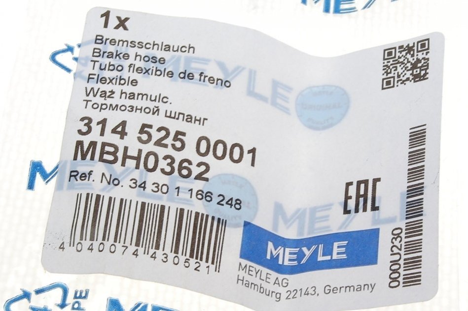 Шланг тормозной MEYLE 314 525 0001