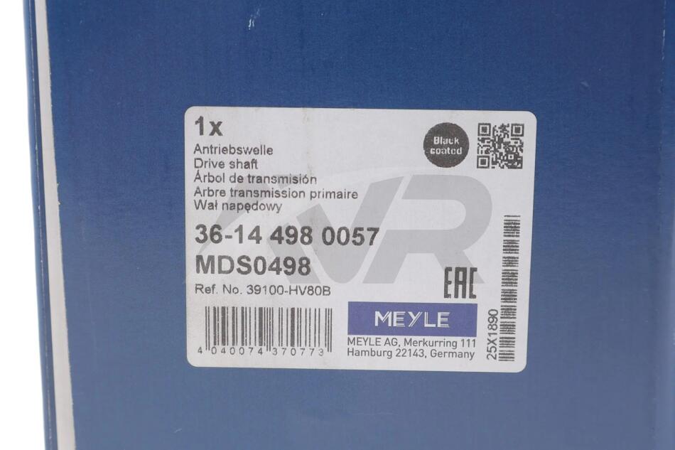 Піввісь (передня)(R) Renault Kadjar 18-/Nissan Qashqai II 1.5 dCi 13- (29z/27z/968mm) Euro 6 MEYLE 36-14 498 0057