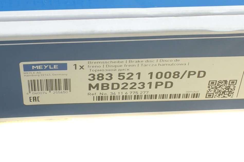 Диск тормозной MEYLE 383 521 1008/PD