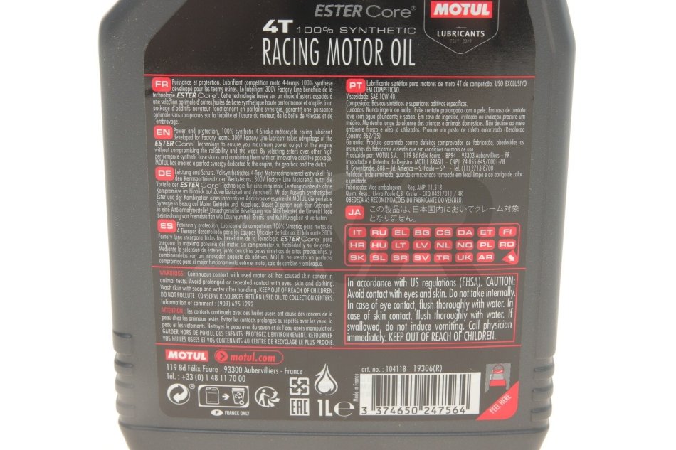 Масло 4T 300V FL SAE 10W40 1L MOTUL 836111