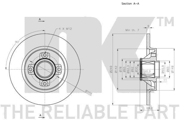 Диск тормозной невентилированный NK 311952