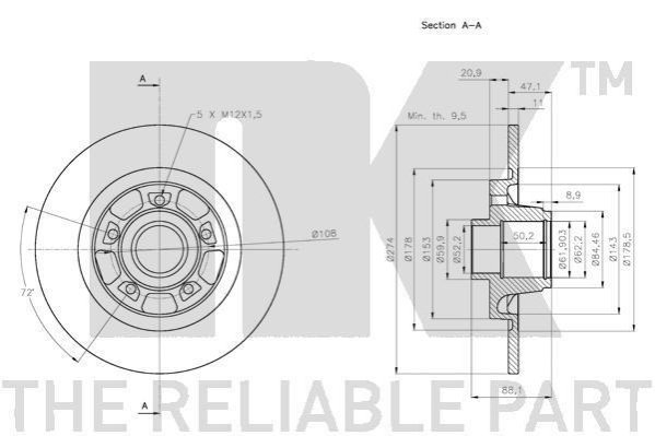 Диск тормозной невентилированный NK 313975