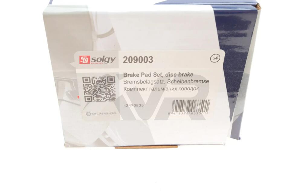 Комплект тормозных колодок Solgy 209003