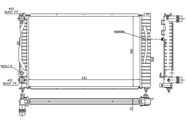 Размеры радиатора: 632-398-32