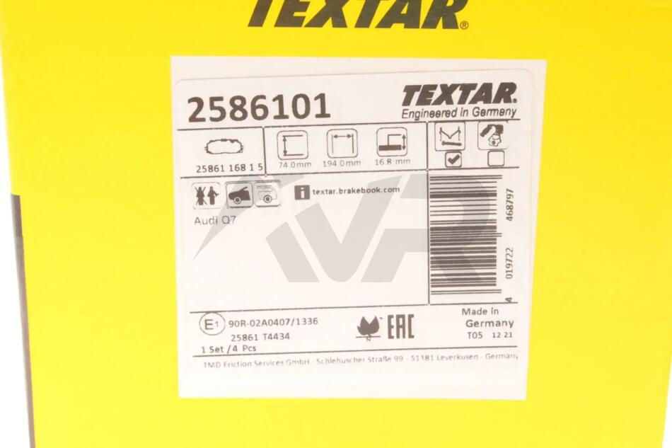 - TEXTAR 2586101 подходит к маркам/моделям авто: