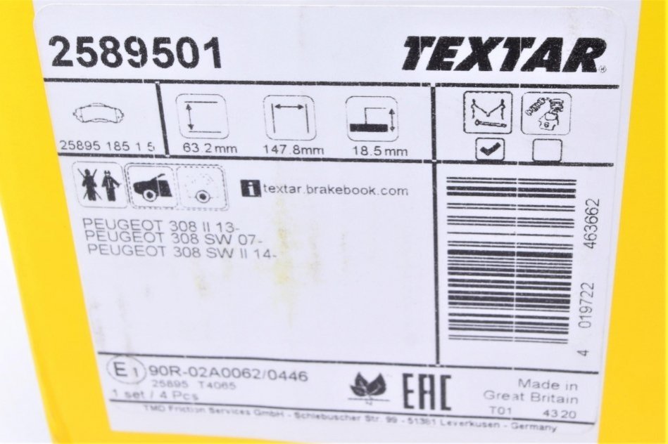 - TEXTAR 2589501 подходит к маркам/моделям авто: