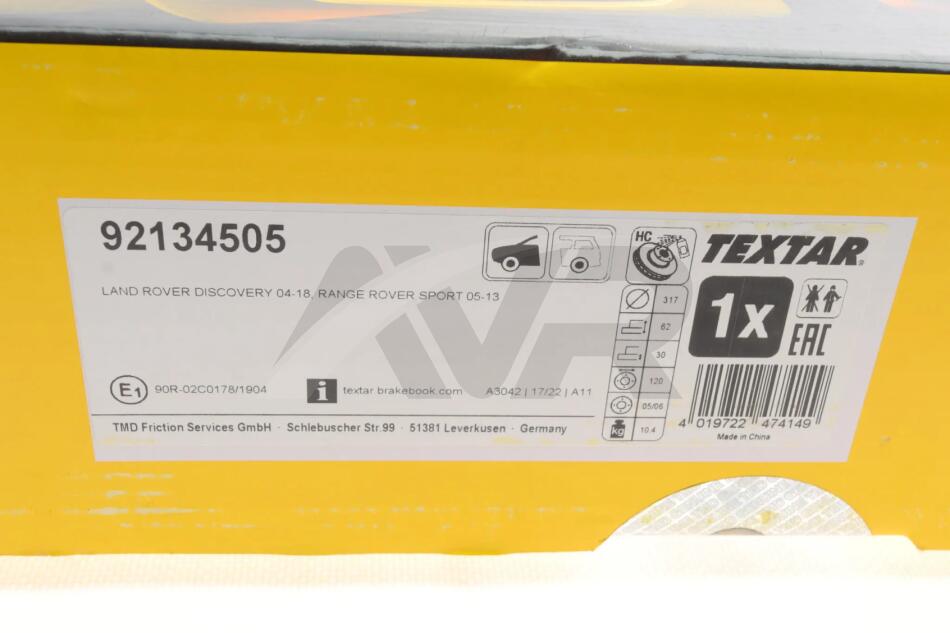 Диск тормозной TEXTAR 92134505