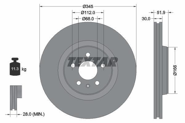 Диск гальмівний передн Лів/Прав (без маточини) AUDI A4 ALLROAD B8, A4 B8, A5, A6 C7, A7, Q5 PORSCHE MACAN 1.8-4.2 06.07- TEXTAR 92229203