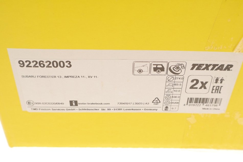 - TEXTAR 92262003 подходит к маркам/моделям авто: