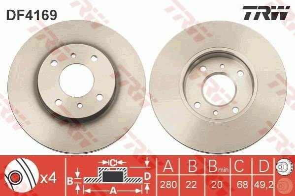 Диск тормозной (1 шт.).) NISSAN Almera/Primera/Primera Estate/Wagon TRW DF4169