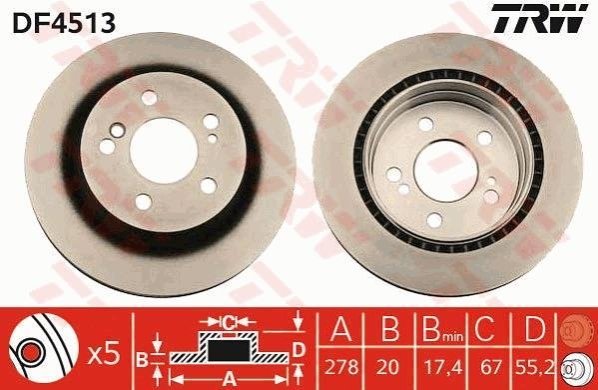 Диск тормозной (1 шт.).) MERCEDES C(W203)/E(S124)/SLK(R171) "R D=278mm "89-11 TRW DF4513