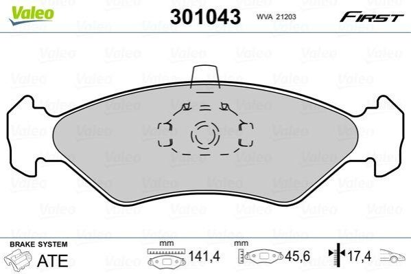 Тормозные колодки дисковые FORD/MAZDA Fiesta/Escort/121 "1,0-1,8 "F "89-08 Valeo 301043