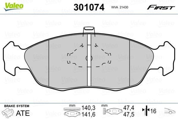 Тормозные колодки дисковые CITROEN/PEUGEOT Saxo/Xsara/106/306/Partner "1,0-2,0 "F "92-08 Valeo 301074