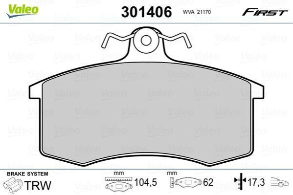 Тормозные колодки дисковые LADA Samara "1,1-1,5 "F "86-06 Valeo 301406