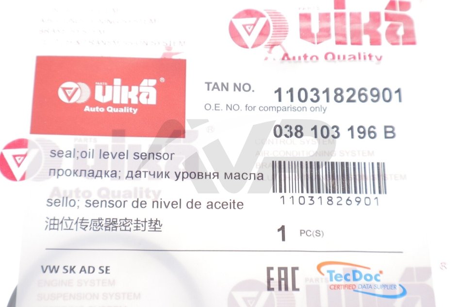 Кольцо уплотнительное датчика уровня масла Skoda Octavia (05-13,12-)/VW Golf (08-13),Passat (10-14,14-) Vika 11031826901