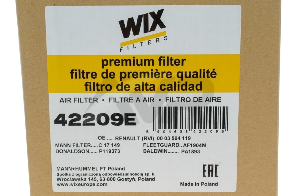 Воздушный фильтр WIX FILTERS 42209E