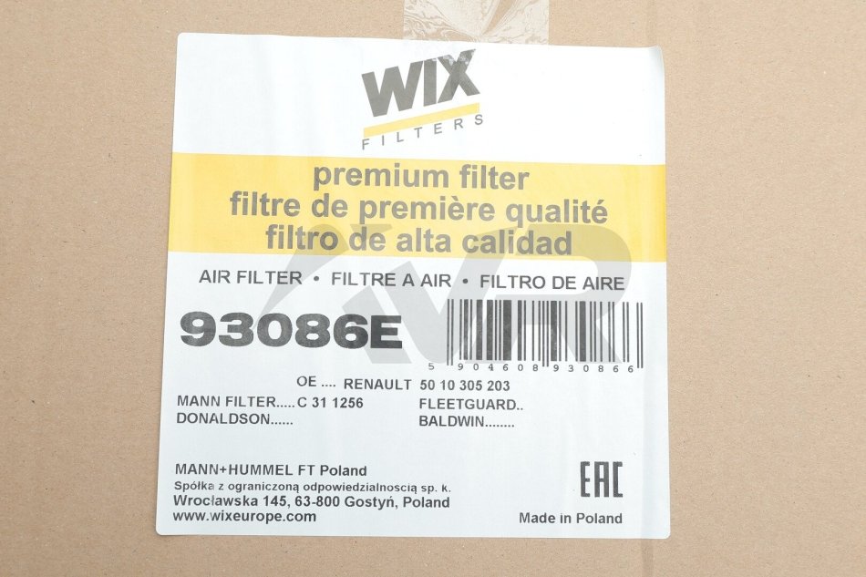 Фильтр воздушный WIX FILTERS 93086E